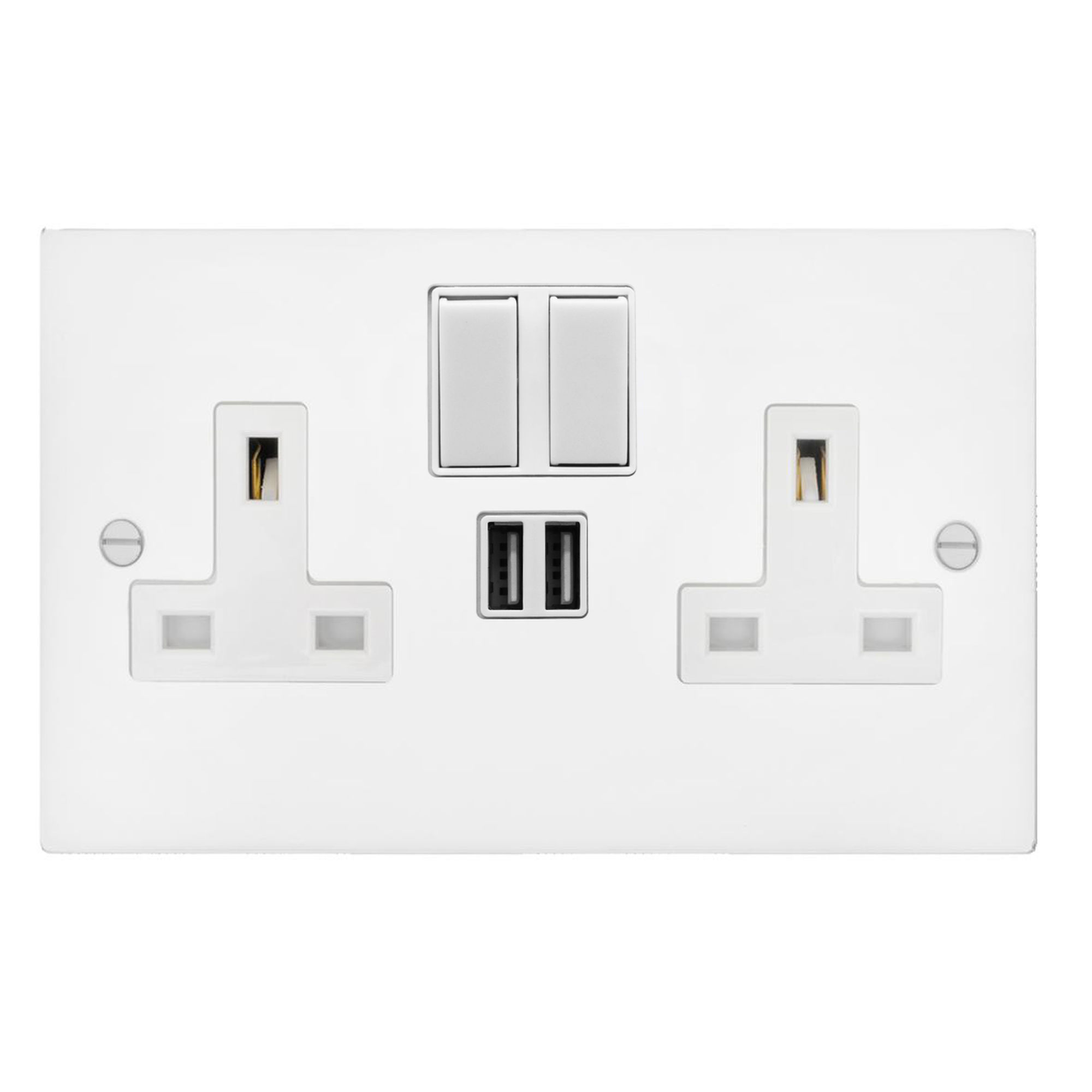 Switched Socket Outlet with USB-A+A Chargers 2 gang 13 amp Matt White