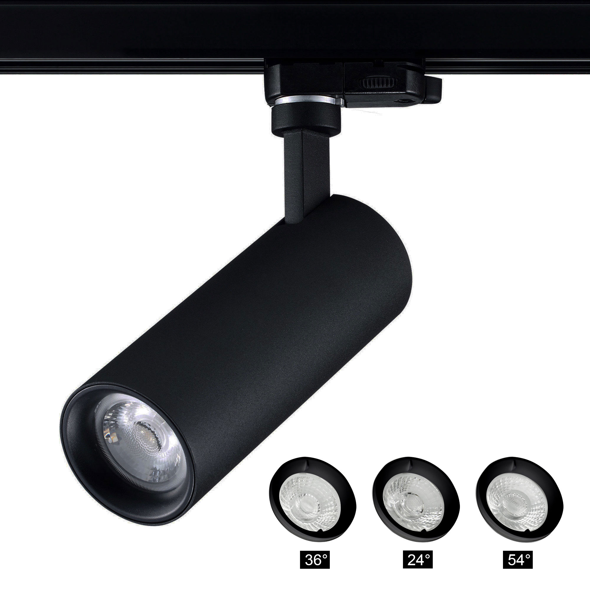 Constructed with a robust die-cast aluminium body and featuring a passive cooling heatsink, Pixo Track Light spotlight ensures durability and efficient heat dissipation. With beam angle of 36° and featuring additional exchangeable lenses for alternative beam angles of 24° and 54°, this track light offers versatility to suit your specific needs.