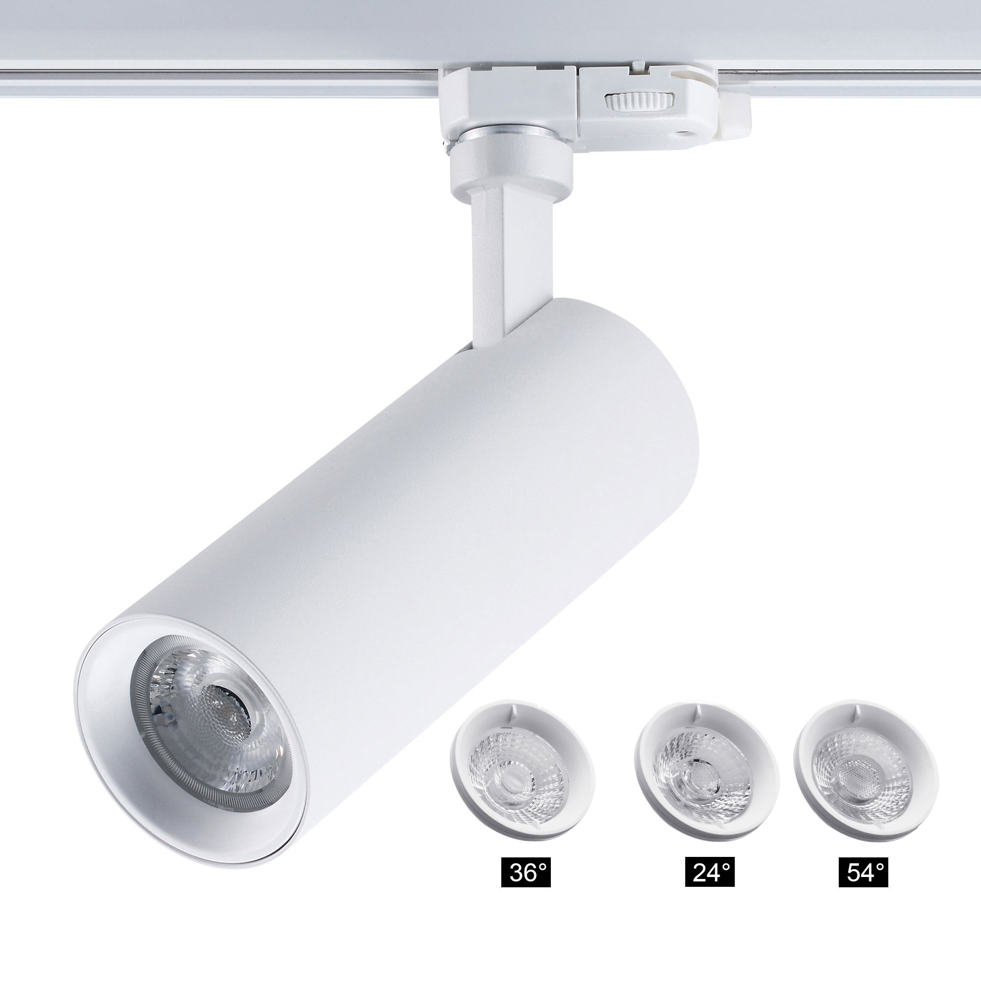 Constructed with a robust die-cast aluminium body and featuring a passive cooling heatsink, Pixo Track Light spotlight ensures durability and efficient heat dissipation. With beam angle of 36° and featuring additional lenses for alternative beam angles of 24° and 54°, this track light offers versatility to suit your specific needs.