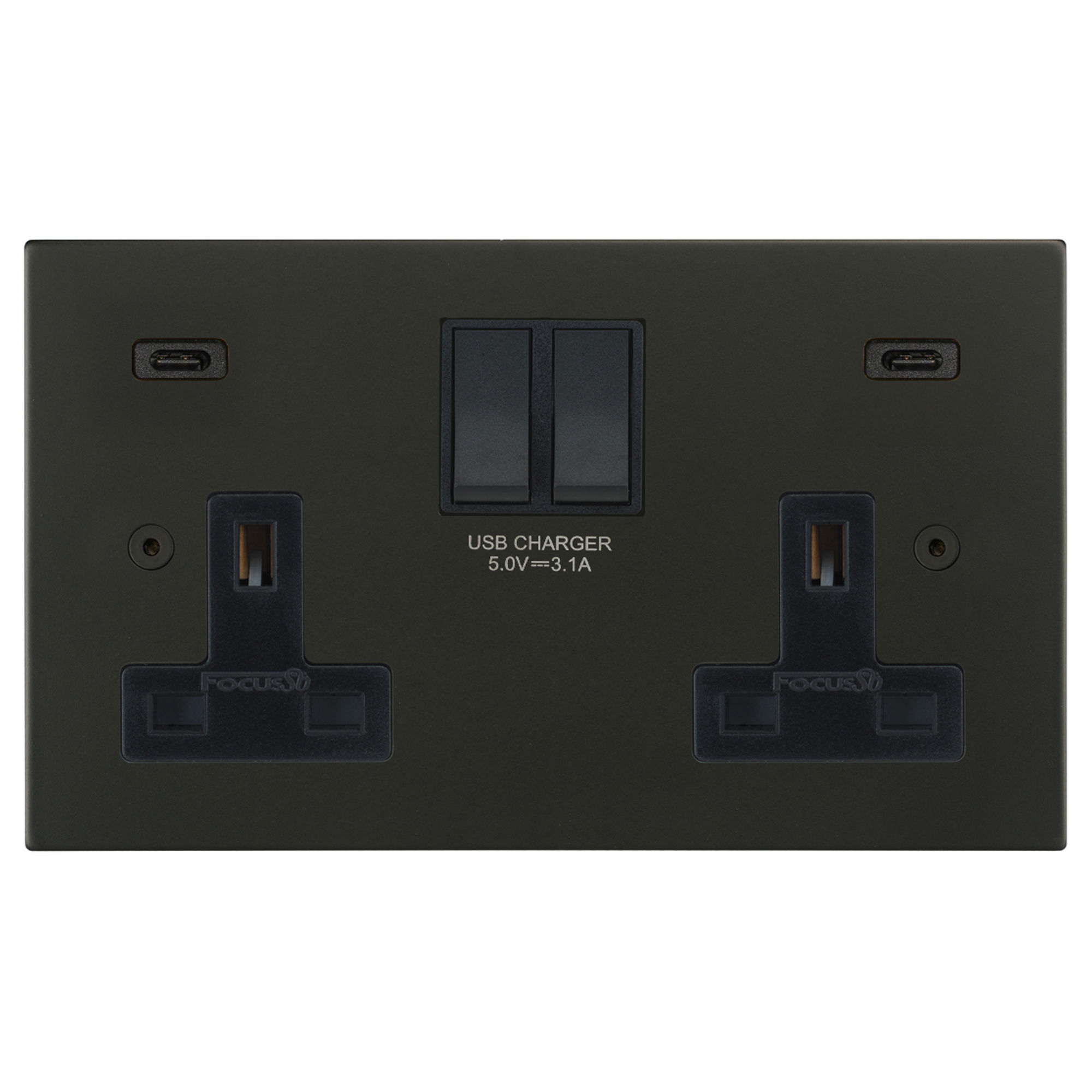 Ambassador Square Switched Socket Outlet USB-C+C Charger 2 gang 13 amp Matt Black