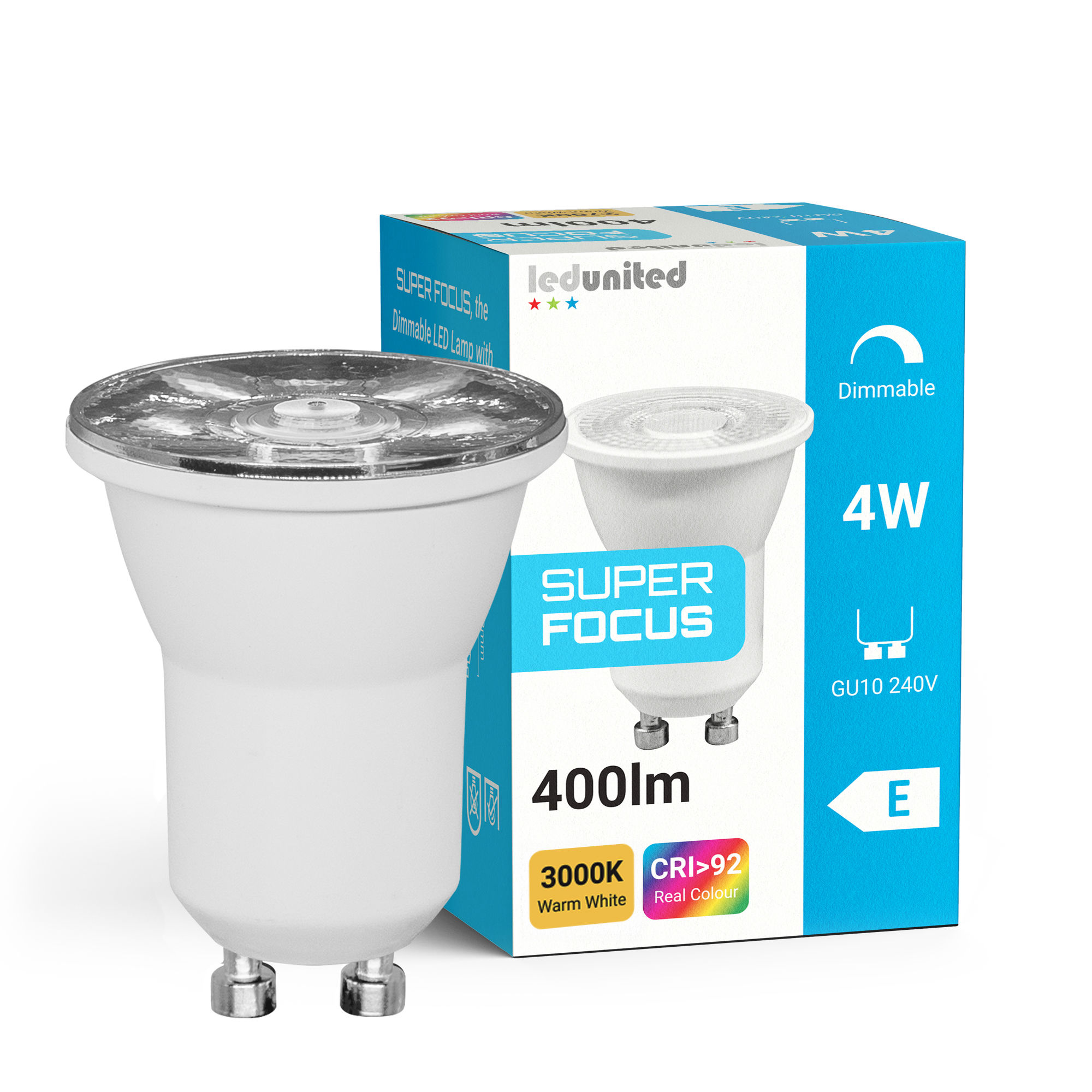 Super Focus LED GU10 10W 1000lm CRI92 Dimmable Lamp 38° 3000K Warm White