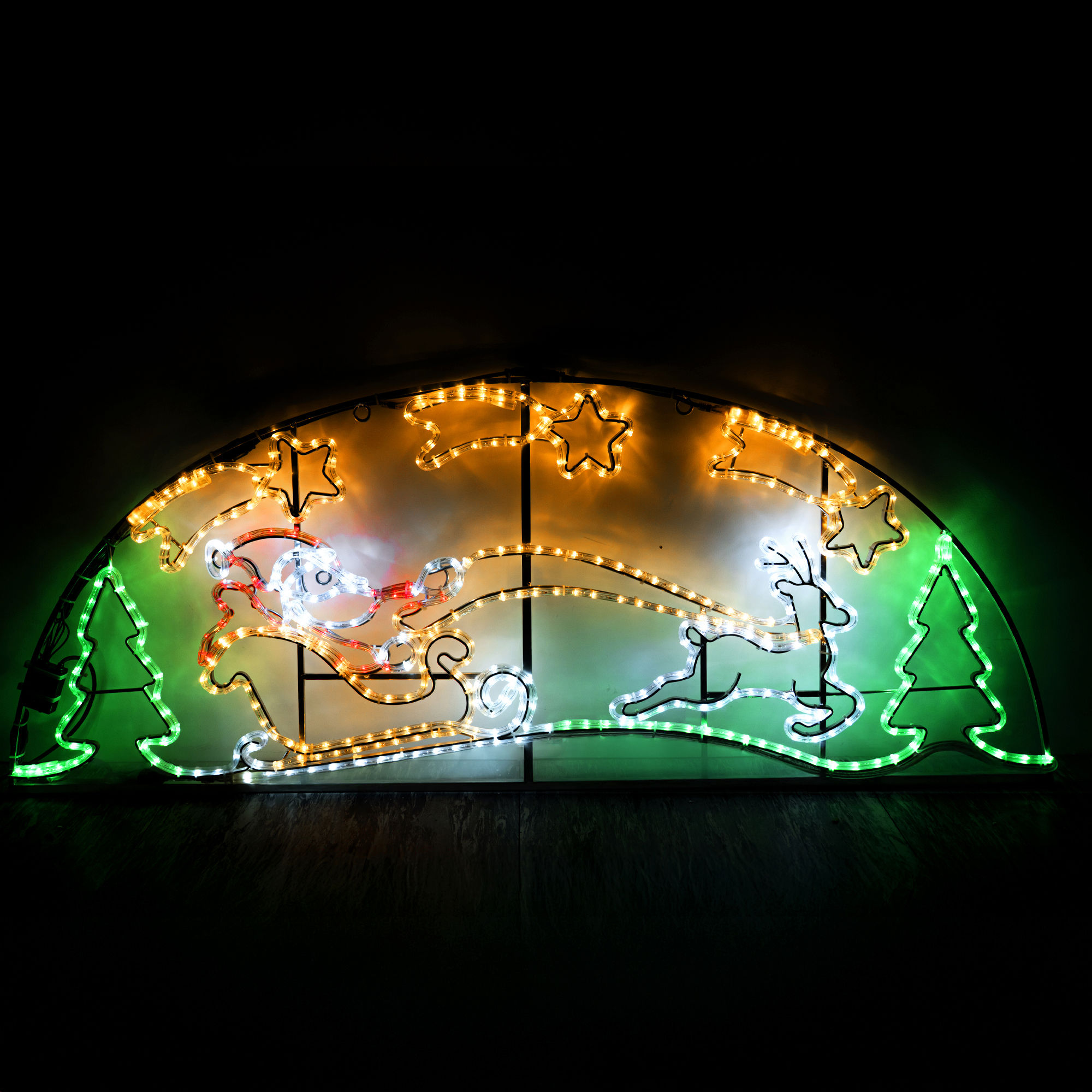 Create a stunning seasonal feature with this elegant Christmas display, perfect for commercial lighting and festive decorations in retail spaces, hospitality venues, and outdoor events. Designed for durability and easy installation, this motif is fitted with soldered slots at the top, allowing it to be securely mounted onto a wall or suspended for eye-catching overhead displays. Ideal for adding a warm, inviting glow to shop windows, building façades, or festive interiors.