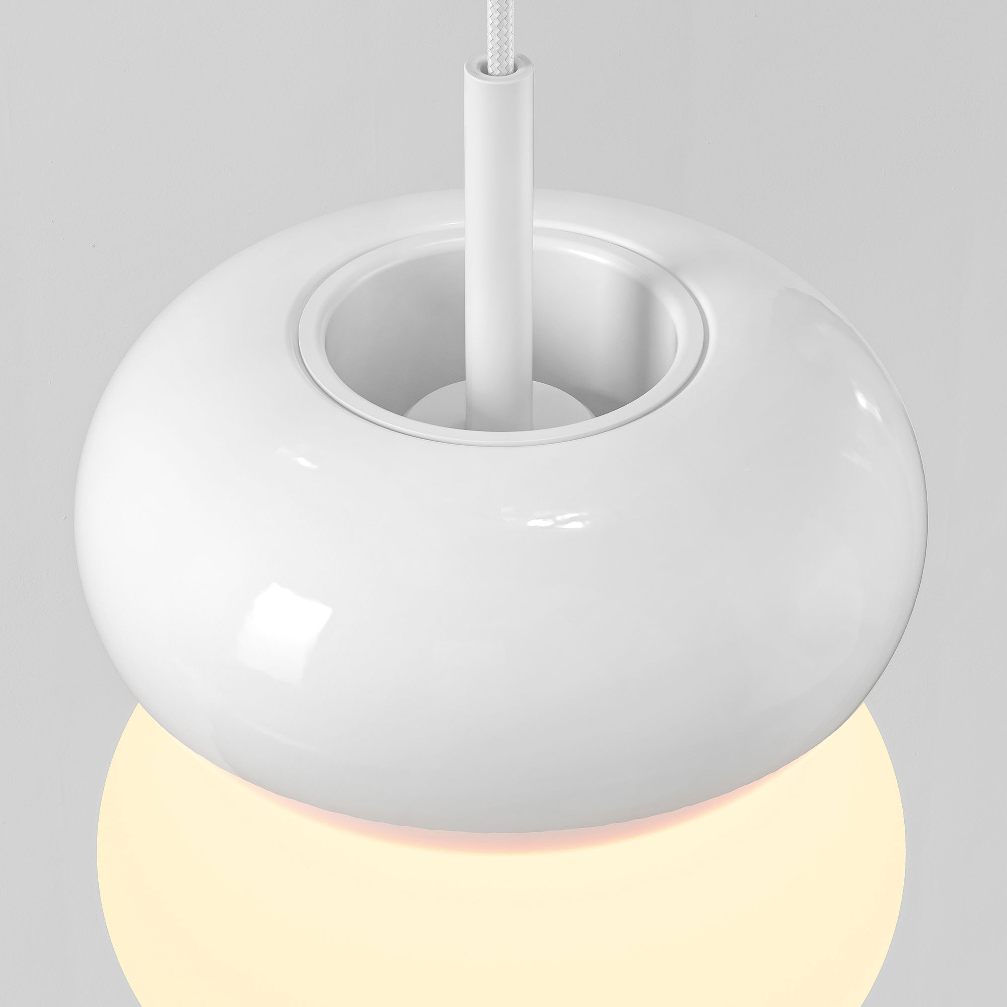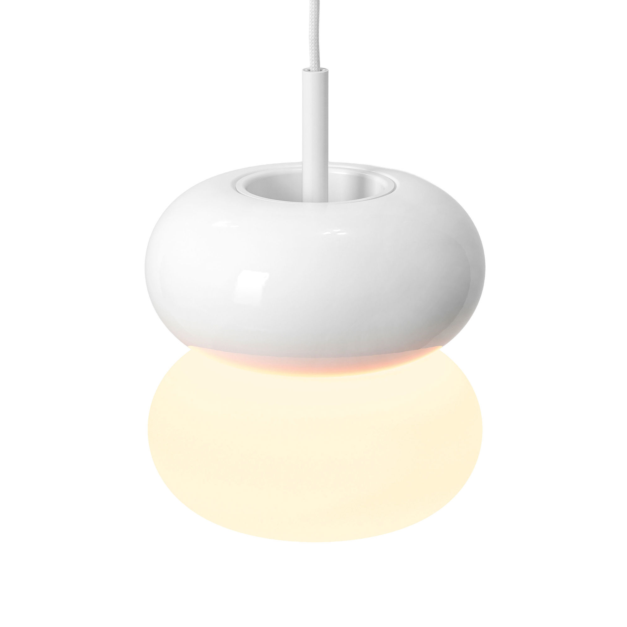 Combining a gloss white spun-metal top shade with an opal, hand-blown glass diffuser below, Duo 210 is a contemporary pendant defined by balance and contrast. Its clean, curved form casts a warm, ambient glow, bringing a sense of unity above bar, dining and counter areas.